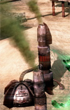 The Tiberium Silo stores unrefined Tiberium for processing. It is unknown if they will spill the contained Tiberium when destroyed as in Tiberian Sun. The gas coming out of the Silo is due to the Tiberium not being refined, thus it produces gas. (sfx)